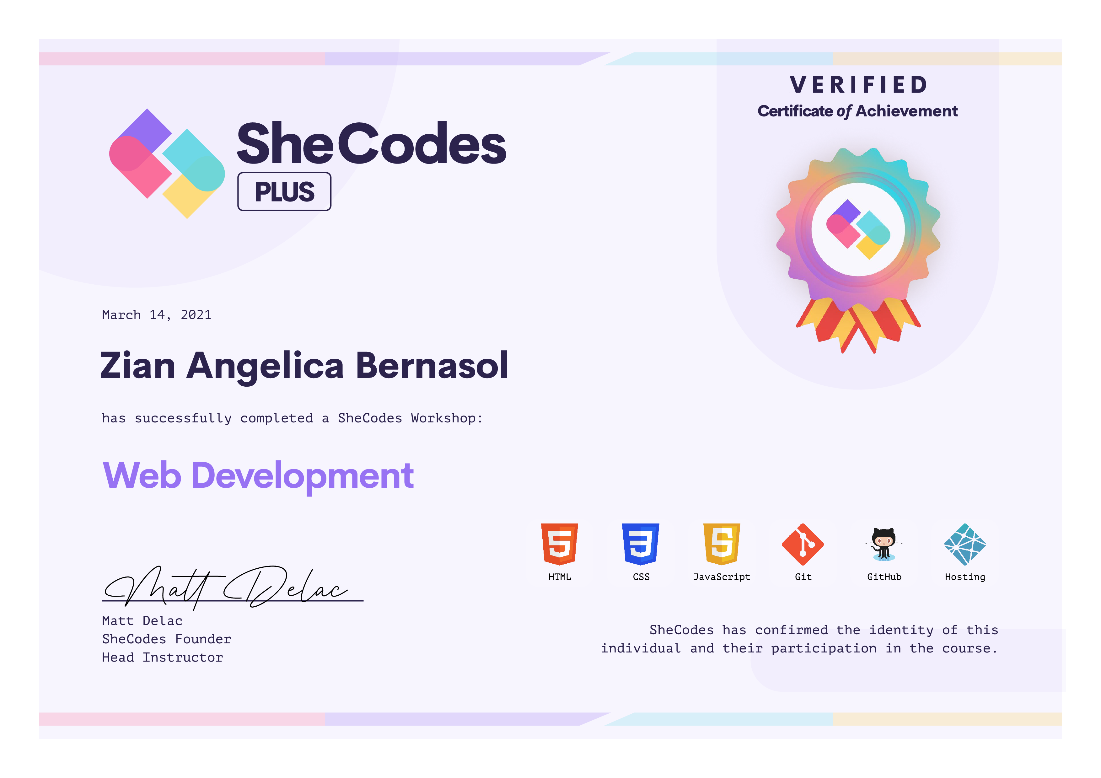 Zian Angelica Bernasol SheCodes Profile | SheCodes