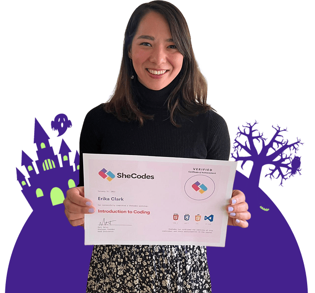 Finish each SheCodes Workshop with a real-life project to show off your coding skills to employers.