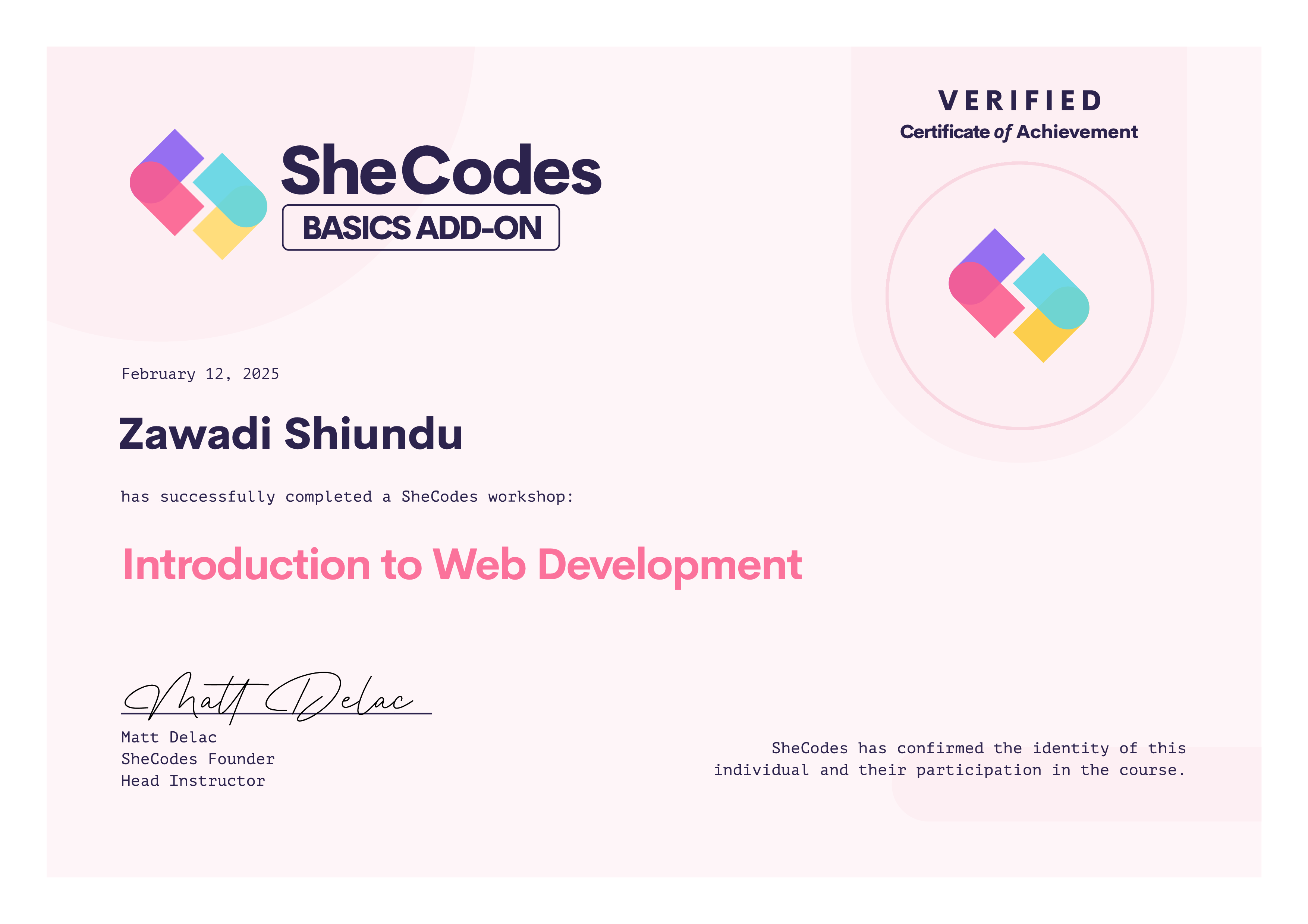 π SheCodes Certifications