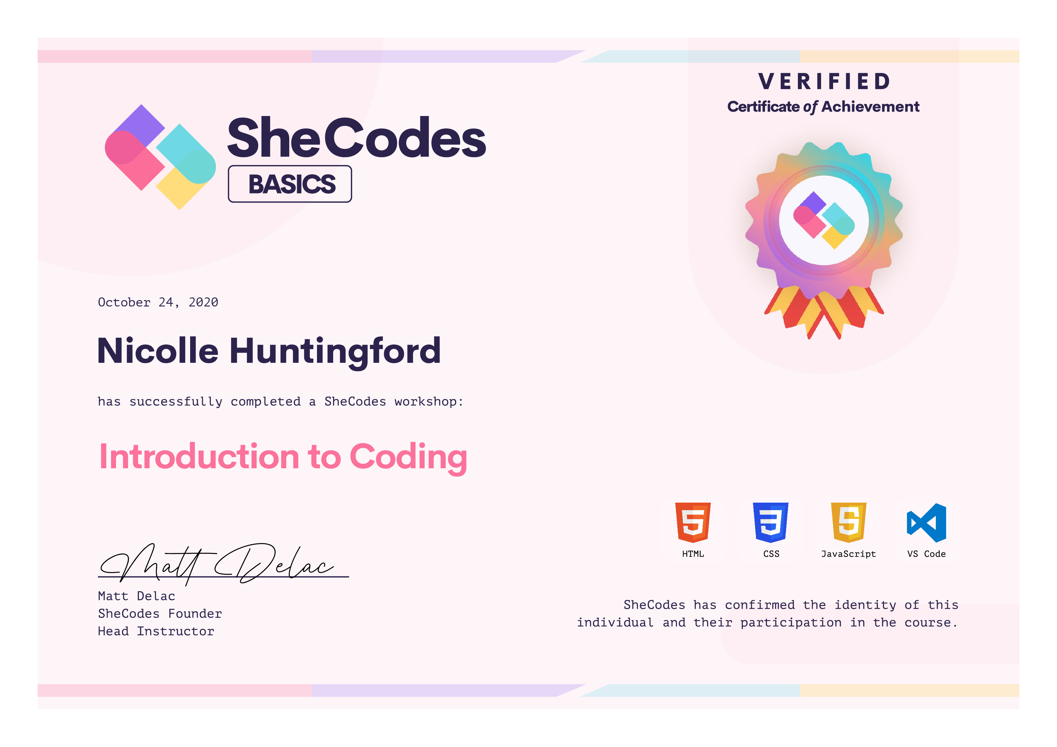 Nicolle Huntingford SheCodes Profile | SheCodes